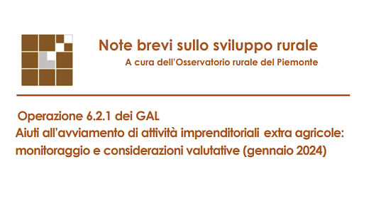 6 febbraio 2024 - Una nota breve sull'andamento dell’Operazione 6.2.1 dei GAL e alcune considerazioni valutative a cura di IRES Piemonte, valutatore esterno del PSR 2014-2022